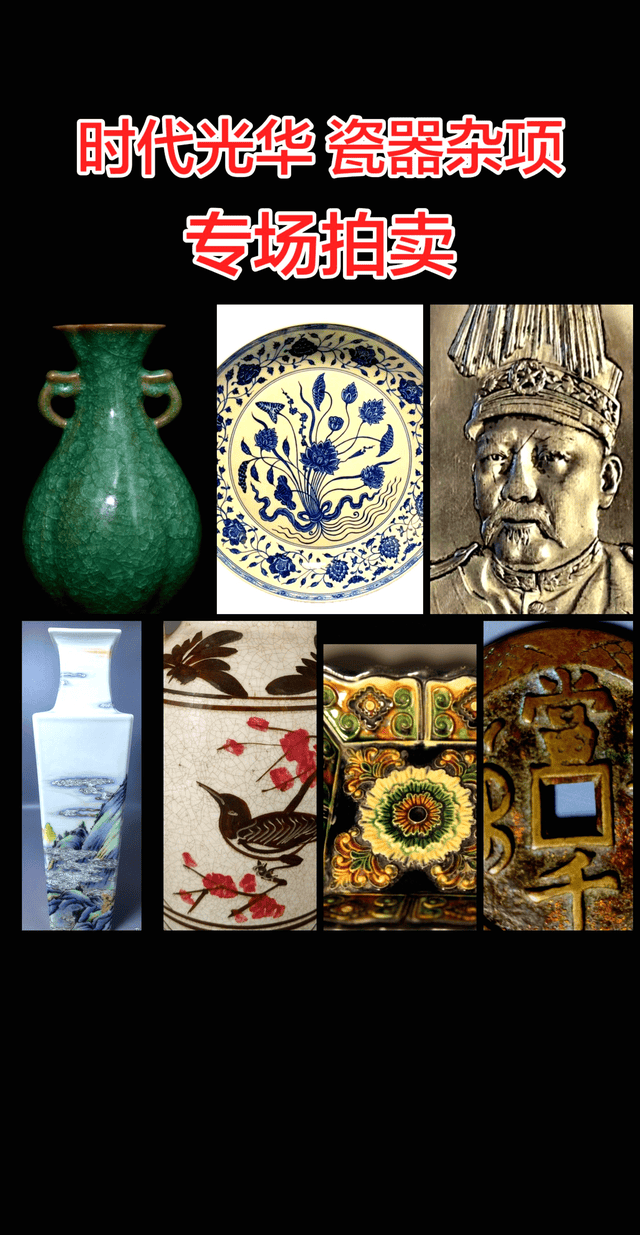 ● 时代光华——瓷器杂项专场:聚焦具有鲜明时代印记的瓷器、玉器、古典家具及各类文房雅玩,每一件藏品都凝聚着特定时代的工艺巅峰,诉说着过往的风华岁月与人文底蕴。